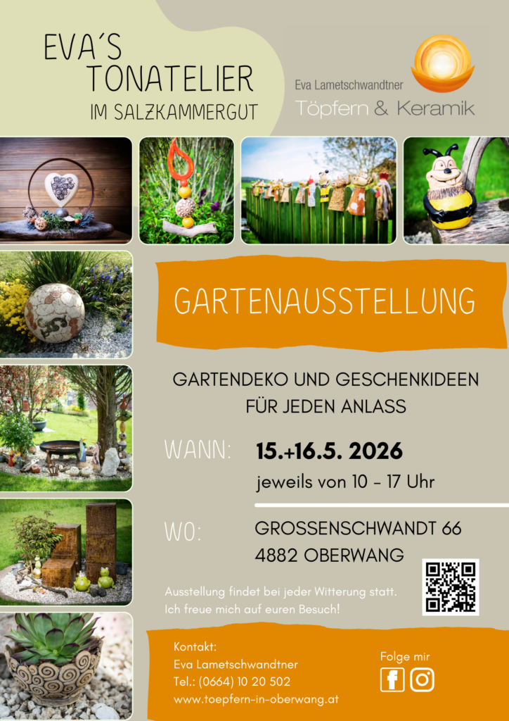 ausgefallene Gartendeko und besondere Geschenkideen für jeden Anlass präsentiere ich bei meiner Gartenausstellung. Schau dich in meinem Schaukasten um oder schlendere durch den Garten am Grundstück – überall warten kleine Unikate darauf, von dir entdeckt zu werden.  WANN:Freitag, 15.5.26 | Samstag, 16.5.26jeweils von 10-17 Uhr WO:Grossenschwandt 66 | 4882 Oberwang Ich freue mich auf Deinen […]